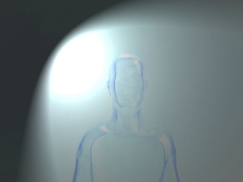 No pudo seguir llorando, estaba cansado, con hambre y empezaba a sentir el dolor de las heridas y los huesos rotos. Pronto se quedó dormido o se desmayó, lo más probable es esto último. Cuando despertó, un ruido como de estática hizo que levantara la cabeza y mirara al frente, en el espacio blanco aparecieron flotando pequeñas manchas grises que de a poco fueron creciendo y juntándose hasta materializar a un androide plateado sin rostro. Era de metal brillante como el líquido que aprisionaba a Gilmour, pero sin ese movimiento extraño, todo en él era sólido.